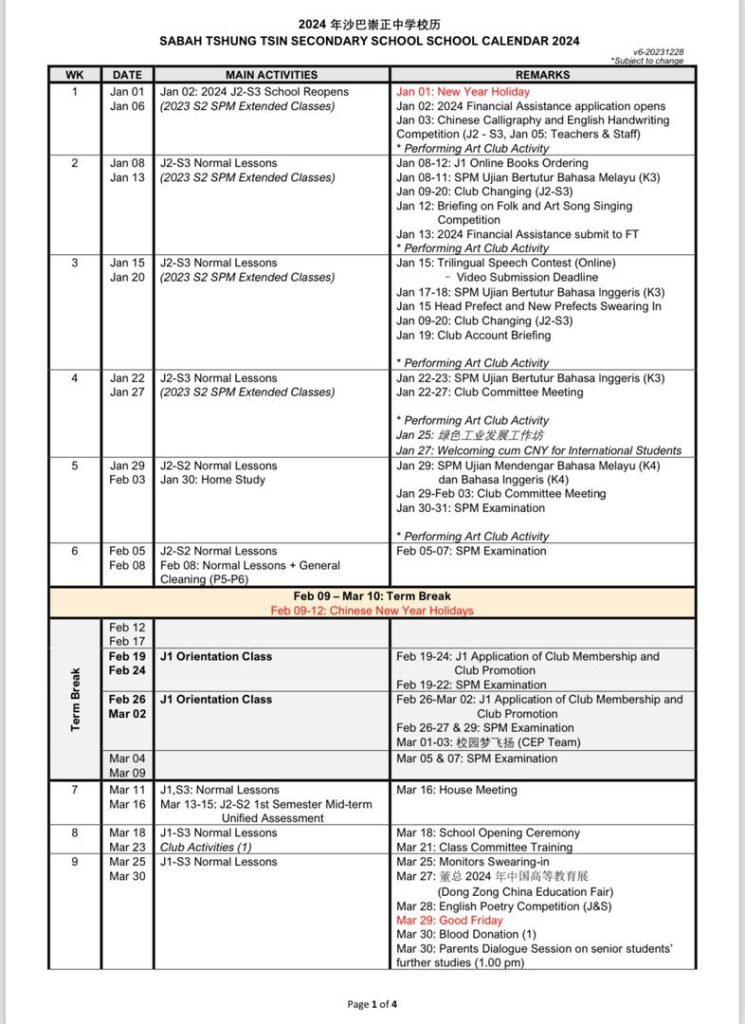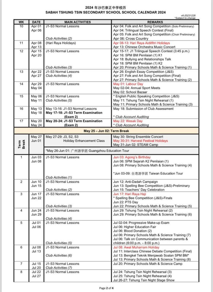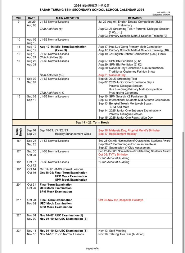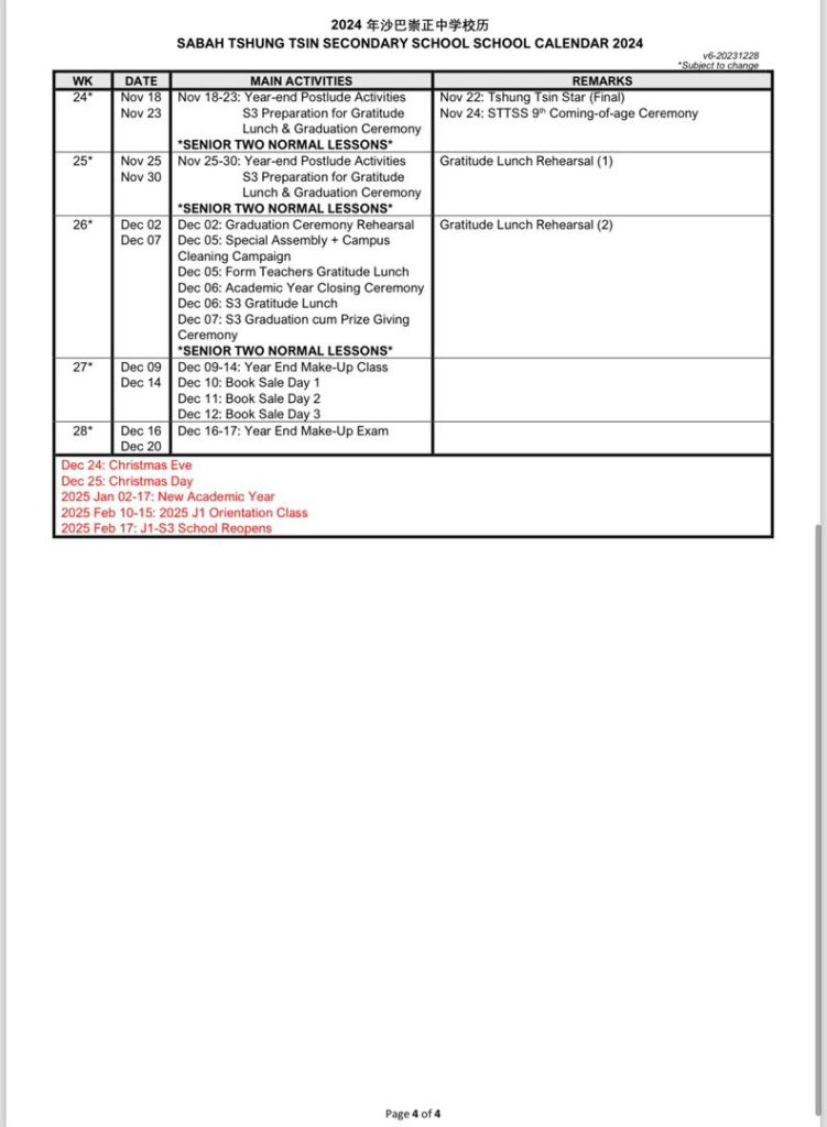 TTSS Calender 2024